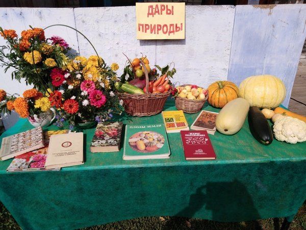 Прозвучали музыкальные номера в исполнении Анастасии Верещагиной, Василия Снигирёва, Эльвиры Колмаковой. Сотрудники культуры КОЦ к этому дню подготовили выставку «Дары природы», где были представлены овощи, фрукты, букеты осенних цветов, выращенные сельчанами на своих участках.