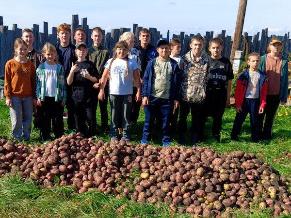 Трудовой десант занимался уборкой урожая и пересаживал комнатные растения. Очень радовались выращенному урожаю.