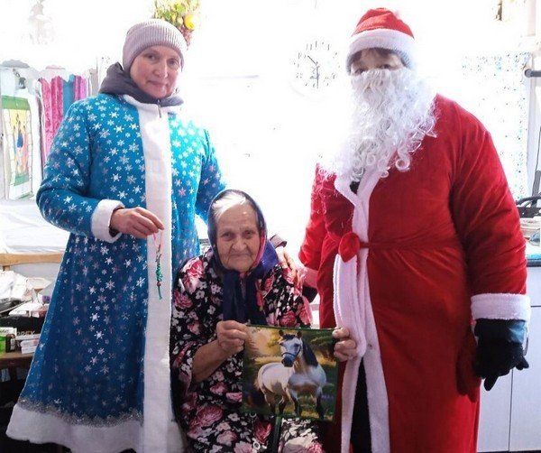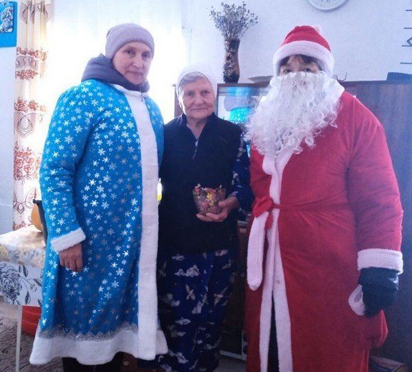 Дед Мороз со Снегурочкой поздравили детей войны с Новым годом. С искренними пожеланиями благополучия, здоровья, счастья и долголетия вручили небольшие, но приятные новогодние подарки. В каждом доме гостям были рады. Пожилые люди были тронуты до глубины души, проявленной теплотой, вниманием и заботой. Ведь лучший подарок для пожилого человека – это внимание и хорошее настроение!