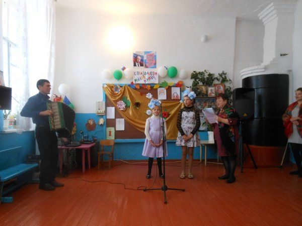Дети своими руками сделали поздравительные открытки – сюрпризы для мам и бабушек. Участвовали в конкурсе рисунков «Мамин портрет». Разучивали стихи и песни для любимых мам. Мастерили цветы, которыми оформили праздничный стенд. Девочки спели задорные частушки. Порадовала своим выступлением гостей праздника группа «Суерочка». Во время праздничного мероприятия прозвучали разные песни как бравшие за душу, так и задорные, вызывающие желание пуститься в пляс.