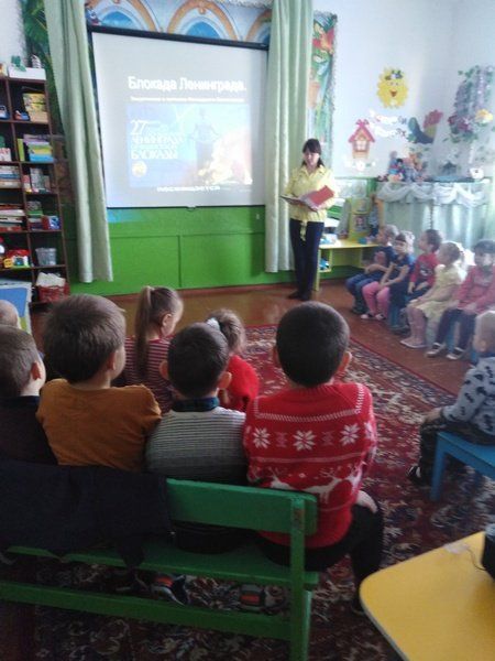 С детьми дошкольного возраста прошли беседы с использованием презентаций «Блокадный Ленинграда», «Хлеб блокадного Ленинграда», «Дорога жизни».Дети посмотрели видеофильм «Блокада Ленинграда глазами детей».