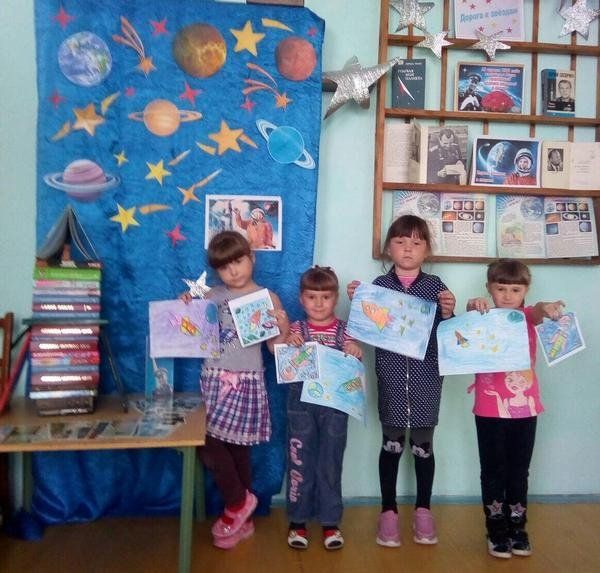 Для самых маленьких прошла игровая программа «Звёздный сын Земли». Дети узнали, что мы живём на планете Земля. Ребятам было рассказано о космических телах. О том, кто такой космонавт и каким он должен быть.Опервых животных, побывавших в космическом пространстве. И конечно о полёте в космос первого человека. Затем дети рисовали рисунки на тему «Я мечтаю о космосе».