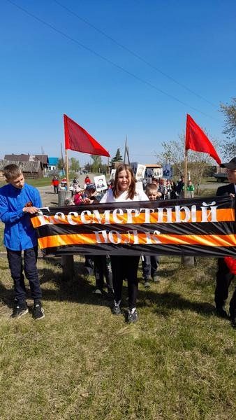 Наступил долгожданный день 9 мая – День Победы. С утра стартовала акция «Вахта памяти», в почетный караул заступили школьники 2 и 4 классов. По селу разносились военные песни. «Бессмертный полк» начал свое победное шествие. Жители села с гордостью несли портреты своих отцов, прадедов и дедов, солдат, погибших на войне. Колонна, с цветами, флагами и воздушными шарами, продвигалась к памятнику погибшим воинам-односельчанам. Торжественный митинг открыт. Прозвучали стихи, слова благодарности труженикам тыла, поздравления с праздником. Односельчане по традиции отдали дань уважения минутой молчания, возложением венков и цветов к памятнику.
