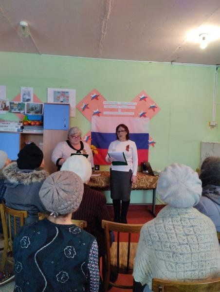 Закончился месячник просмотром концерта-песни «Звучит в сердцах Победа». В ходе подомового обхода в деревне Песьяное избиратели были проинформированы о выборах Президента России, а мужчины получили поздравление с Днём Защитника Отечества.