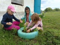 В четвертый день дети ухаживали за цветниками возле здания КОЦ, пропололи их от сорняков.