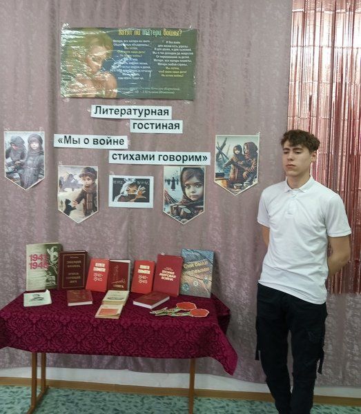 28 марта в рамках года Защитника Отечества и 80-летия Великой Победы распахнула свои двери литературная гостиная «Мы о войне стихами говорим». Трогательно и проникновенно ребята читали стихи о войне А. Твардовского, Д. Попова, Э. Асадова, М. Джалиля, Ю. Друниной, Р. Гамзатова, А. Дементьева, М. Исаковского. Во время мероприятия школьники познакомились с выставкой «Подвиг народа в книгах». В завершении почтили память всех павших за мир и нашу свободную, спокойную жизнь минутой молчания.