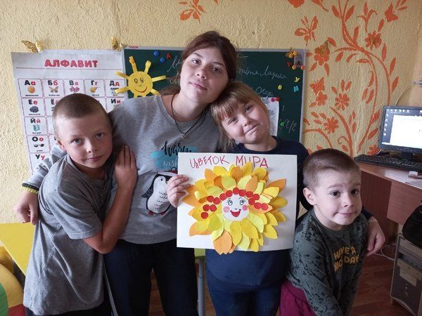 В Международный день мира все присутствующие призвали к миру на земле. Изготовили коллективную открытку «Цветок мира». Каждый желающий на стенд прикрепил свое пожелание мира.