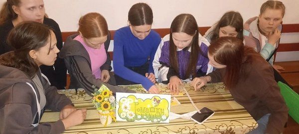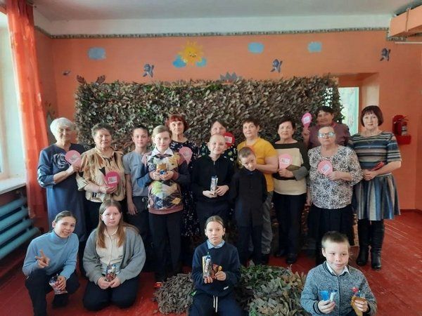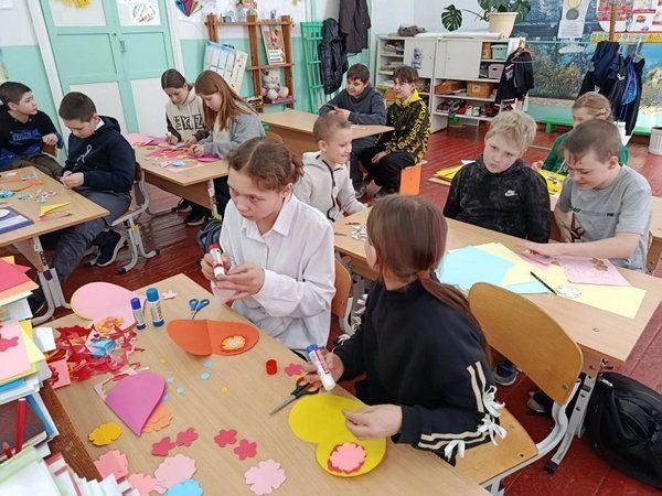 Дети из 5-7 классов совместно с младшими школьниками изготовили поздравительные открытки. Приятные презенты были подарены своим мамам, бабушкам и женщинам волонтерам, которые изготавливают маскировочные сети на СВО.